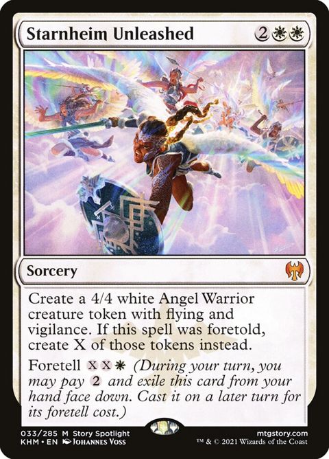 Create a 4/4 white Angel Warrior creature token with flying and vigilance. If this spell was foretold, create X of those tokens instead.