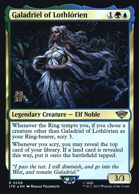 Whenever the Ring tempts you, if you chose a creature other than Galadriel as your Ring-bearer, scry 3.