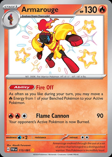 Fire Off: As often as you like during your turn, you may move a Fire Energy from 1 of your Benched Pokémon to your Active Pokémon.
